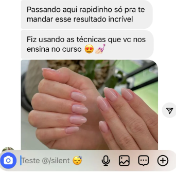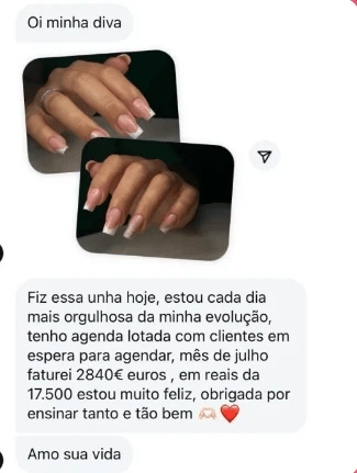 Nós desenvolvemos uma metodologia prática e simplificada, para que você aprenda de forma rápida e fácil, sem complicação. As aulas são passo a passo, com explicações claras e exemplos práticos, que vão permitir que você faça suas próprias unhas com qualidade profissional, mesmo sem experiência prévia.